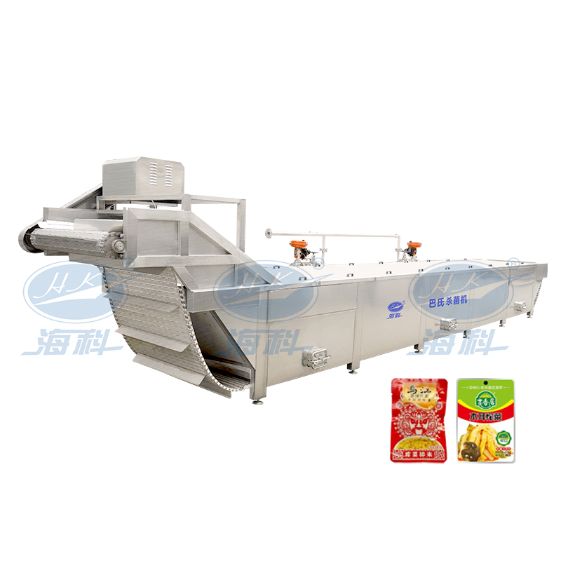 在食品、飲料、制藥等行業(yè)中,要求對一些包裝完畢的產(chǎn)品進行水浴式滅菌,被包裝好的產(chǎn)品放在可調(diào)速的不銹鋼網(wǎng)帶上,在傳遞帶的作用下按順序進入滅菌箱體內(nèi),經(jīng)由“高溫水為介質(zhì)”殺菌后,再由傳送帶帶入箱體均勻冷卻,從而達到產(chǎn)品殺菌要求。殺菌、冷卻機連續(xù)運轉(zhuǎn),已滅菌的包裝產(chǎn)品被源源不斷送入下一生產(chǎn)線。